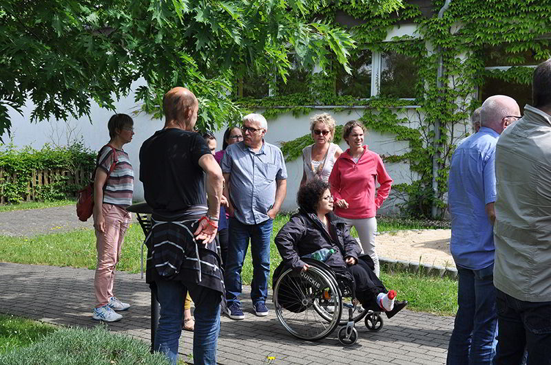 Echanges au tour du handicap avec un organisme local « AWO » et l’Association Pour Handicapés du Perche à Cormenon, représenté par son directeur, Loïc Tytgat accompagné de quelques résidents, également Alia Hammoudi en charge de l’inclusion et de l’accessibilité à la mairie de Vendôme complétés par d’autres acteurs tels qu’Ingrid Germain référente handicap et son homonyme allemand.