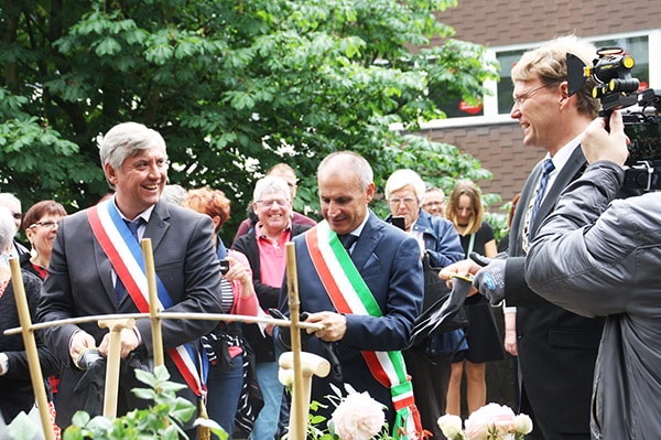 Remise du cadeau offert par Vendôme à Gevelsberg, 45 roses de Ronsard plantés devant la mairie.