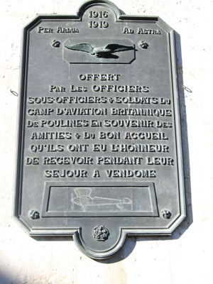 « Offert par les officiers, sous-officiers, soldats du camp d’aviation britannique de Poulines en souvenir des amitiés et bon accueil qu’ils ont eu l’honneur de recevoir pendant leur séjour  à Vendôme ».