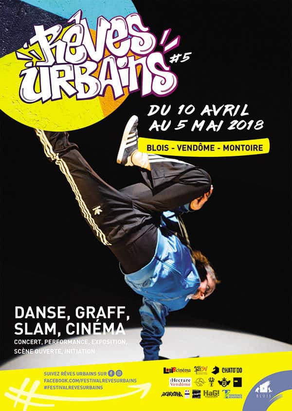 Du 10 avril au 5 mai, la cinquième édition du festival d’arts urbains et de hip-hop, «Rêves urbains», se partagera entre Montoire-sur-le-Loir, Vendôme et Blois. Pendant les trois semaines du festival, le public pourra découvrir des spectacles de danses, professionnels et amateurs, des performances de graff, écouter du slam ou encore encourager les battles…
