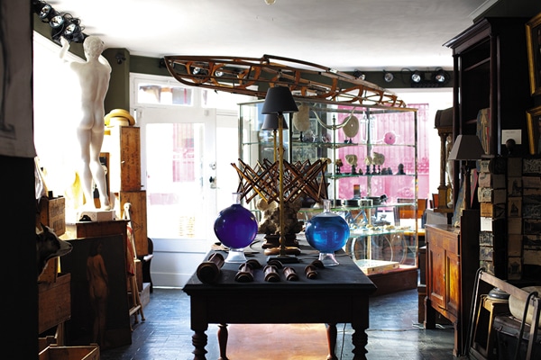Déjà l’esprit de cabinet de curiosités y pointe son nez. Tout fonctionne mais Grégoire a envie de voguer seul. En 97 il quitte Baugé pour aller voir sur Tours si la ville vaut le détour. Changement de style. Le moderne s’affiche partout. L’influence déco-belge prônée par la maison Flamand le titille. Il monte un autre projet, cap sur la déco, à partir d’un hangar de 300 m2. Il installe un lieu de vie, chambre, cuisine, salle de bains et cabinet de curiosités quand même !