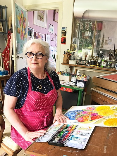 Au mitan des années 80, tombe le doute. Taraudée par les pinceaux, les gouaches et les aquarelles, elle remise son tablier de publicitaire pour basculer vers les métiers du livre. D’abord directrice artistique chez Gallimard-Jeunesse pour Blaireau, un mensuel à destination des 3-6 ans, en charge de l’iconographie et de la mise en page pour Hachette, Nathan ou encore Bordas, elle fait un pas de côté et tranche. Ce sera le dessin. Et pour son compte. Revendiquant la liberté de création. Sa liberté tout court. En 2008, elle déboule paisiblement à Savigny, en quête de campagne et de nature.