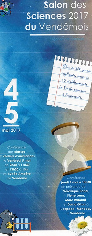 Partant d’une étude qui révèle qu’un travail au sein des écoles, collèges et lycées est nécessaire en matière de savoir-faire et de méthodologie scientifique, un groupe d’enseignants motivés, dont Jean-François Ortemann, s’est inscrit dans le projet d’un Salon des sciences en Vendômois, le 5 mai 2017.