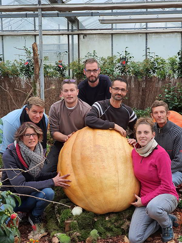 Toute lequipe des Serres Saint Martin Et puis un jour, il récupère une vingtaine de graines de citrouilles géantes grâce à un cultivateur qui les produisait pour Disney Land Paris. Des graines qui à la base sont bien plus grosses, de la taille d’une amande charnue. «L’idée d’en faire un concours pour deviner le poids de ce cucurbitacée a germé et nous nous sommes lancés dès le printemps dans un sol riche en matières organiques en décomposition à semer quelques graines après les Saints de Glace car très sensibles au froid» poursuit il.