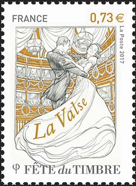 fete du timbre la valse Timbre La Valse :  ce timbre gravé en taille-douce par Elsa Catelin a été dessiné par Stéphane Levallois d’après une photo de Jean-Daniel Sudres. Format du timbre : 30×40,85mm,