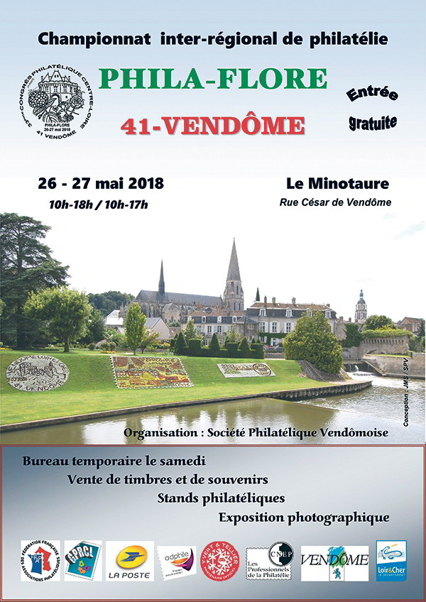 Dans le cadre du 90e anniversaire de la Société philatélique Vendômoise et des 10 ans du timbre représentant la ville, un championnat inter-régional de philatélie, avec une belle exposition regroupant des philatélistes des Groupements régionaux Maine-Anjou-Touraine, Centre-Loire et Berry-Nivernais, se tiendra à Vendôme dans la grande salle du Minotaure.