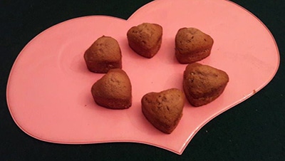 4. Beurrer et fariner un moule à muffins (si possible en forme de cœur) et remplir aux 2/3 les alvéoles. Enfourner 25 à 30mn.