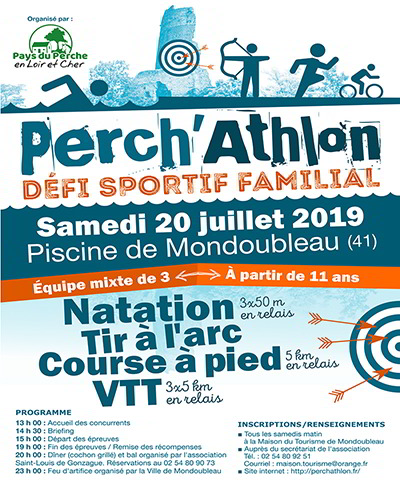 La Commission Perche Aventure de l’association Pays du Perche en Loir-et-Cher lance la troisième édition du Perch’Athlon qui aura lieu samedi 20 juillet à partir de 13h à la piscine de Mondoubleau.